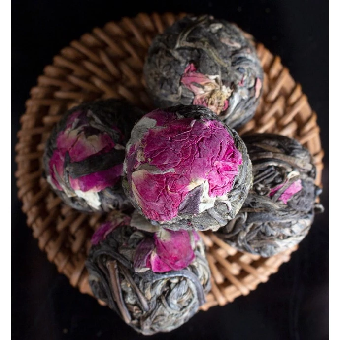 Dried Double Rose Long Zhu Flower (100g) combines the beauty of rose blossoms with the elegance of tea leaves rolled into pearl-like shapes. When steeped, the pearls slowly bloom, releasing a fragrant floral aroma and a mild, naturally sweet flavor. This tea offers a soothing drinking experience, perfect for relaxation and special gatherings. Rose tea is also known for its skin-enhancing and mood-lifting properties. The 100g pack contains enough to prepare multiple servings, making it suitable for personal enjoyment or as a charming gift for tea lovers who appreciate visually stunning and aromatic herbal infusions.CHAR(10)Delight in the luxurious aroma and graceful beauty of Dried Double Rose Long Zhu Flowers (100 g)—hand‑rolled pearls crafted from premium double‑petal rosebuds. Gently dehydrated to preserve their vibrant blush color, delicate fragrance, and beneficial compounds, these exquisite blossoms unfurl into full‑sized roses when steeped, delivering a subtly sweet, floral infusion.